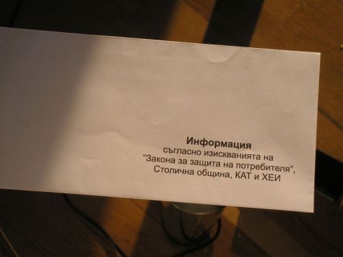 Преди няколко седмици в пощенската си кутия намерих плик с надпис “Информация съгласно “Закона за защита на потребителя”, Столична община, КАТ и ХЕИ: